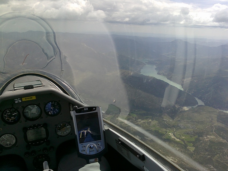 Alle 12, avevamo già 10 nodi leggermente al traverso, ma nessun problema per decollare; poi, come da piano, tutti verso est, seguendo una strada di cumuli, ben disegnata.
