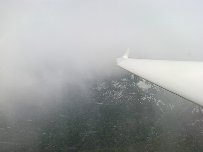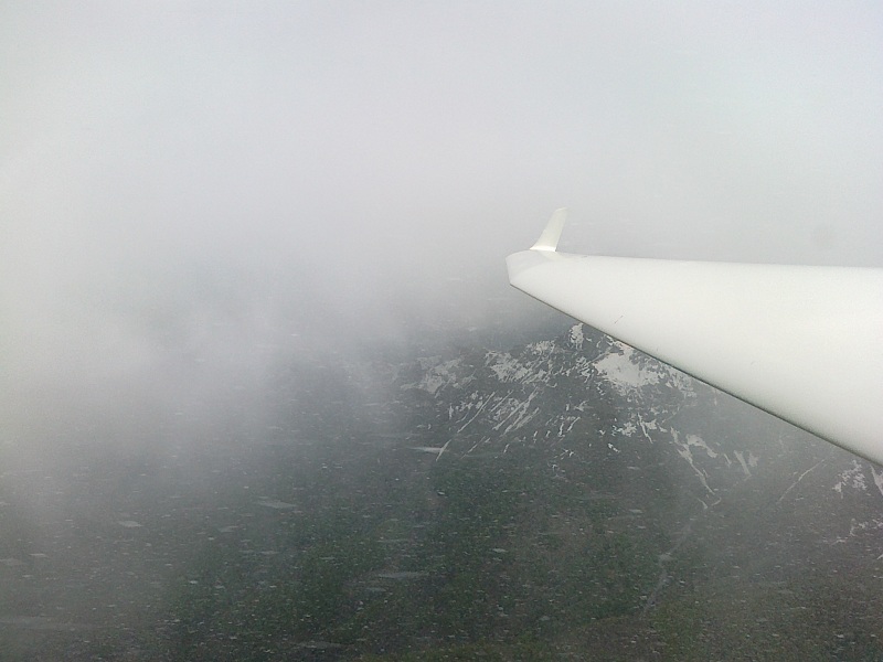 Mentre tengo l'occhio fisso sull'anemometro e sul vario, mi infilo velocissimo nelle barbuglie e la visibilità inizia a diminuire.